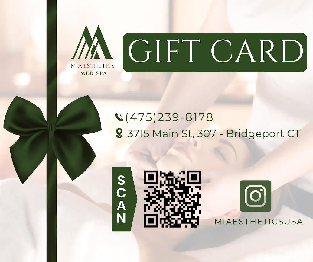 • This gift card can be used for any service or product at Mia Aesthetics Bridgeport;
